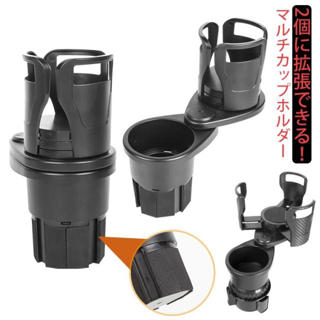 ドリンクホルダー 車 カップホルダー 車用 2in1 マルチカップホルダー 車載 回転 ダブルカップホルダー 車内 車用品 ドリンクカップ 収納 水筒 ペットボトル スマホ 後部座席 車載ホルダー ダブルドリンク 2つ 拡張 車用品 カー用品