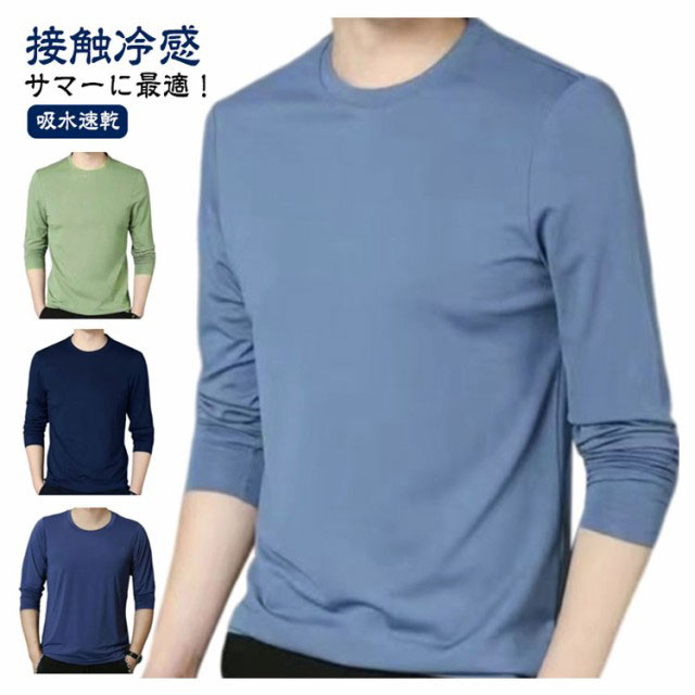 メンズ 長袖 メンズ tシャツ 丸首 夏 接触冷感 トップス 涼しい 長袖tシャツ 薄手 アイスシルク Tシャツ 長袖 ストレッチ 吸水速乾 スポーツ インナーシャツ 作業服 作業着 トレーニングウェア ゴルフ 野球 大きいサイズ バイク 釣り キャンプ 冷感インナー