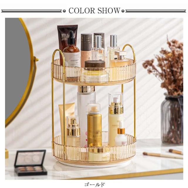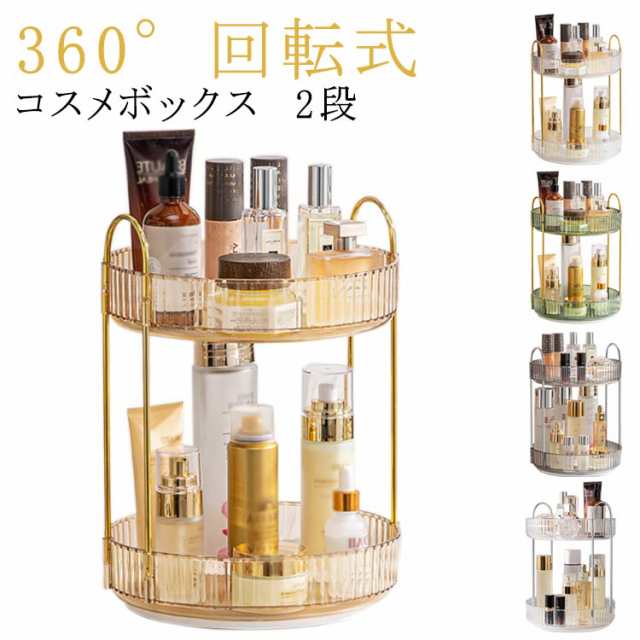 | 360° 回転式 コスメボックス 2段 丈夫なPET+金属素材で耐久性に優れています。 ベースが回転するので反対側に置いた物を取り出しやすく! 持ち手付きで運びやすい! 大容量でごちゃごちゃメイク道具もすっきり整理整頓 | |