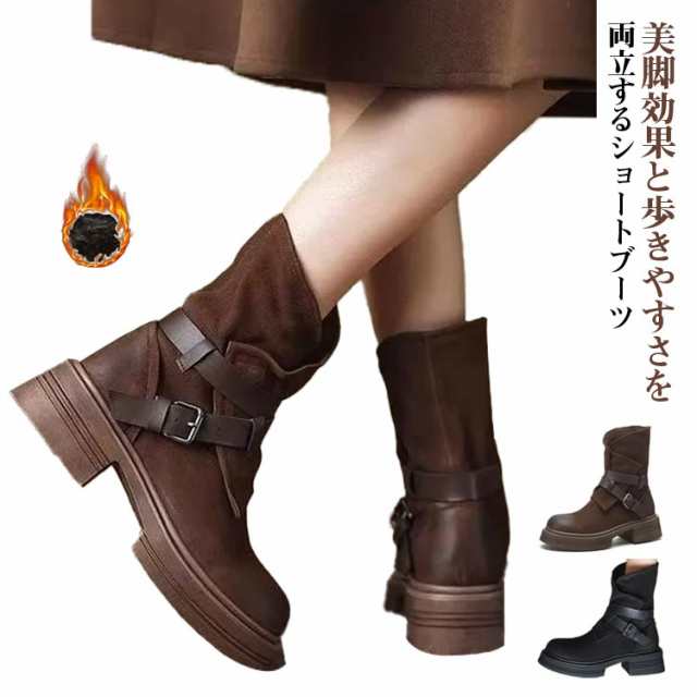 エンジニアブーツ 靴 冬 ショート レディース 大きいサイズ スエード あったか エンジニアブーツ 幅広 甲高 太め 裏起毛 ワイド 婦人靴 履き口 大人 通勤 靴 ローヒール あたたか ベルト付き サイドゴアブーツ