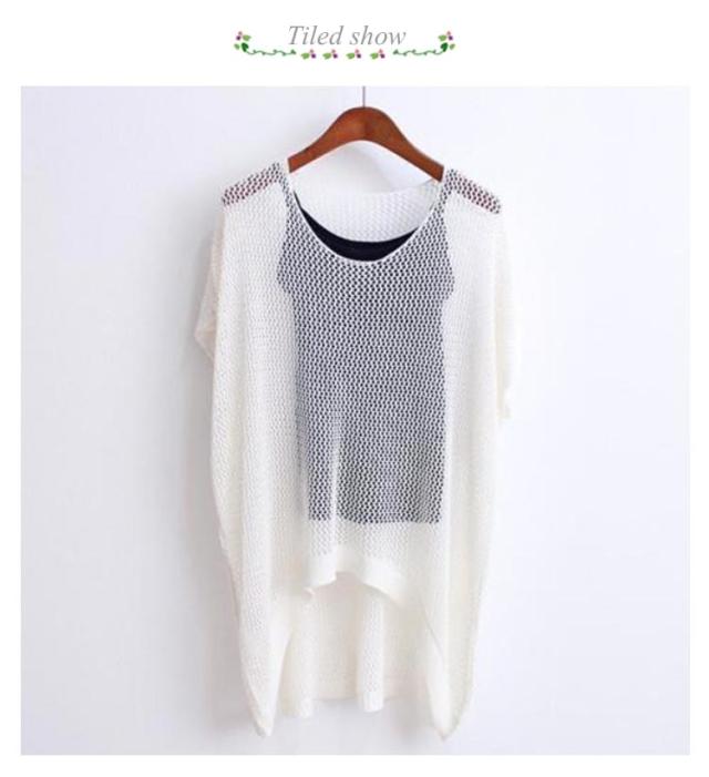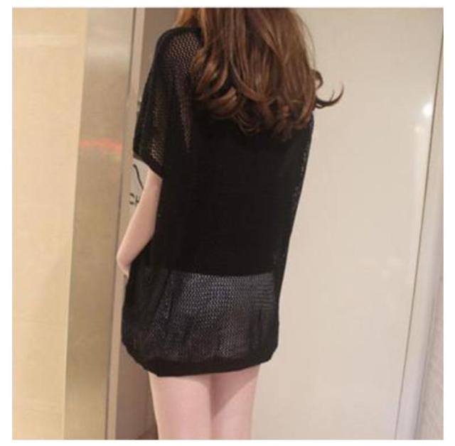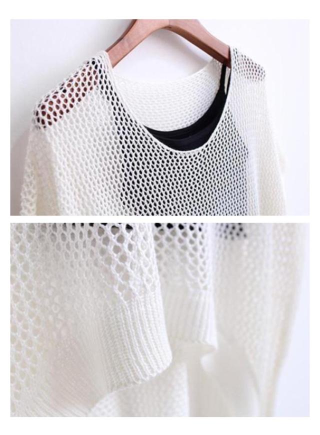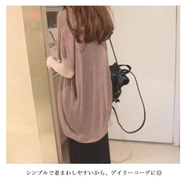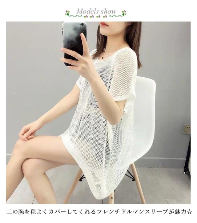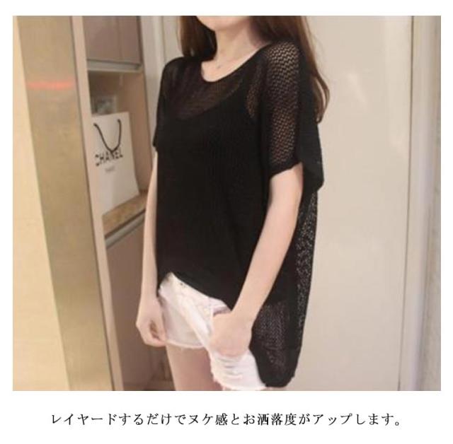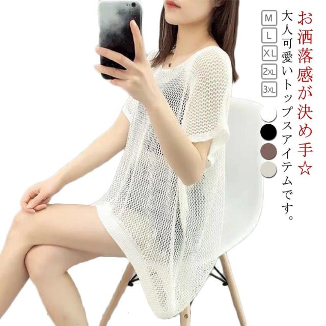 透かし編みニット トップス サマーニット レディース ドルマンスリーブ レイヤード 半袖 ゆったり ふんわり 透け感 夏服 体型カバー 日焼け防止 冷房対策 無地 レジャー プール リラックス感 大きいサイズ 送料無料