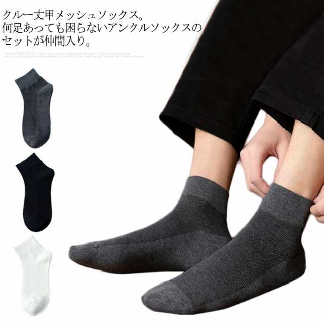 【送料無料】メンズ ソックス クール 靴下 10足セット 夏用 くつ下 クルー丈 接触冷感 ビジネスソックス 黒 メッシュ 綿 吸汗 速乾 涼しい 薄手 紳士靴下 通勤 通学 ひんやり 蒸れない 臭わない 抗菌 防臭 無地