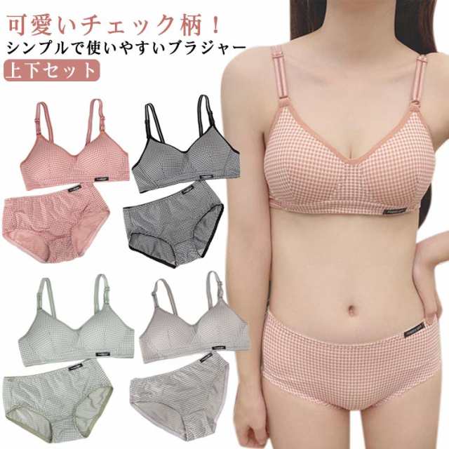 上下セット ブラショーツ ショーツ ファーストブラ ガールズブラ ノンワイヤー ブラジャー ブラセット 可愛い ガールズブラ チェック柄 スポブラ 女の子 カップ付き ジュニア 高校生 中学生