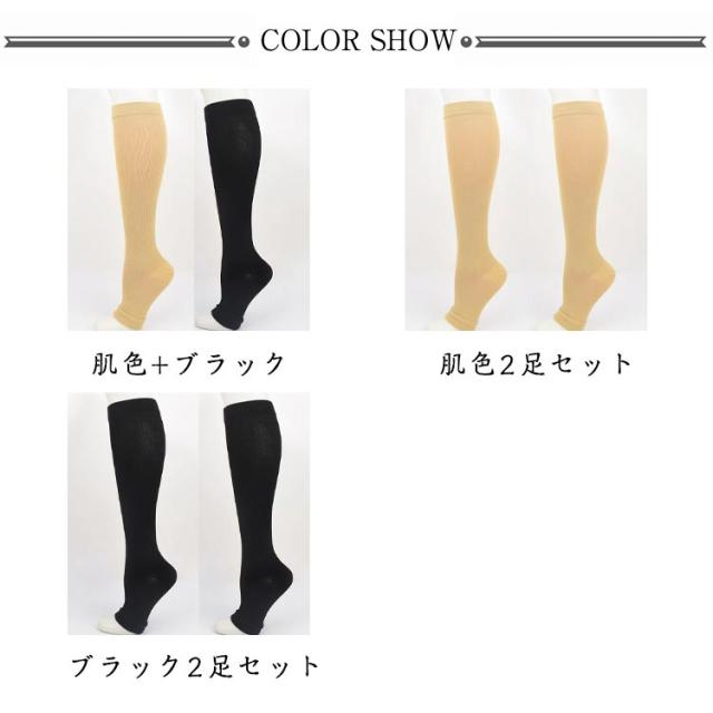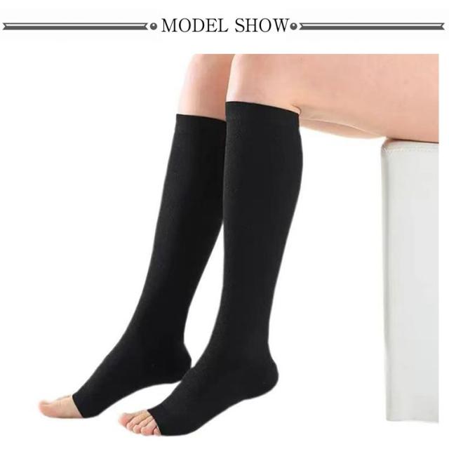 | 【着圧ソックス 2足セット】【段階着圧 美脚効果】 ◎段階着圧でむくみをスッキリ改善 ◎ストレッチ素材で程よい締め付け ◎通気性抜群で蒸れにくいオープントゥ型 立ち仕事・長時間座りっぱなしの仕事で足のむくみにお悩みの方へ | |