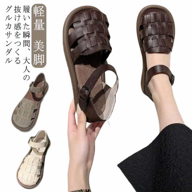 スポーティー お洒落 軽量 レディース 厚底 グルカサンダル サンダル 美脚 靴 24.5 大人カジュアル ぺたんこ グルカ 柔らかい 歩きやすい スポーツサンダル スポサン フラット 大人カジュアル 履きやすい クッション 25.5 23.0 23.5 24.0 疲れない 25.0 ベージュ シューズ