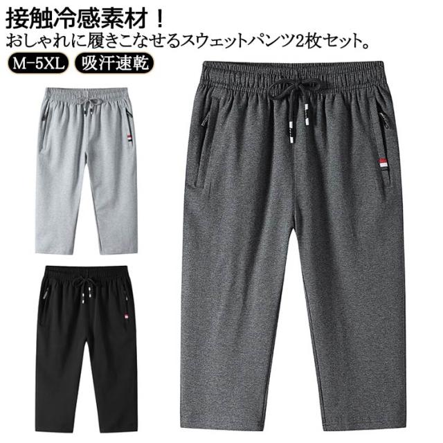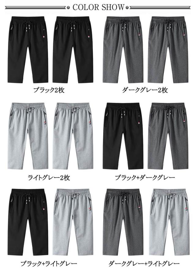 ハーフパンツ 送料無料 下 メンズ パンツ ダンス 7分丈 ジャージ ジョガーパンツ スウェットパンツ 7分丈パンツ 膝下 2枚セット ゴルフウェア ストレッチ ジャージパンツ 送料無料 クロップドパンツ ジョガーショーツ