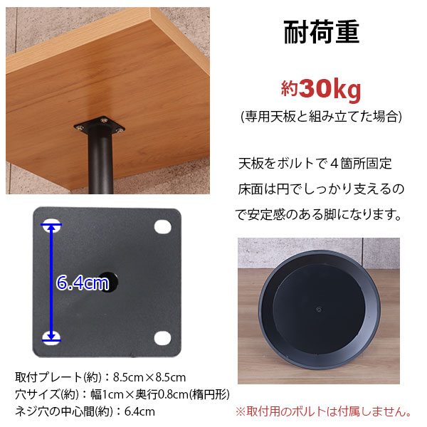 天板をボルトで4箇所固定床面は円でしっかり支えるので安定感のある脚になります。