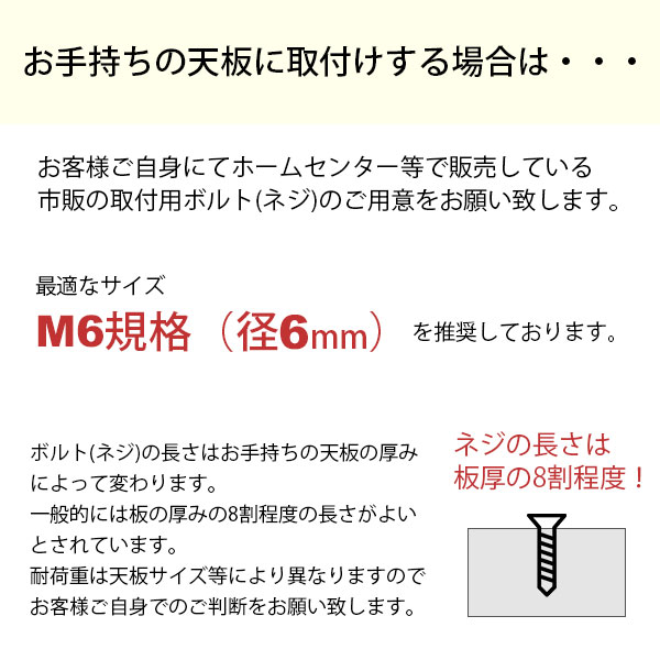 ※お持ちの天板へ取り付ける場合ネジは別途にご用意ください。