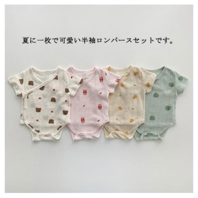 | 夏に一枚で可愛い半袖ロンパースセットです。 素材は肌に優しく、ソフトなコットン生地です。 4カラー展開で兄弟、姉妹オソロでも可愛いです。 出産祝いやちょっとしたプレゼントにおすすめです。 部屋着として、お出かけ着、パジャマ、普段着としても可愛く使えます。 | |