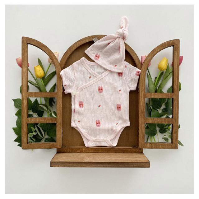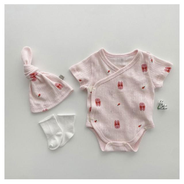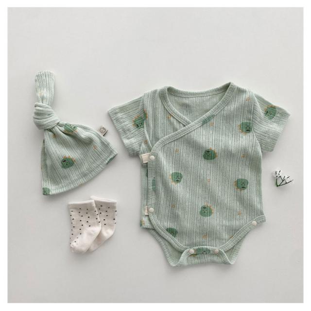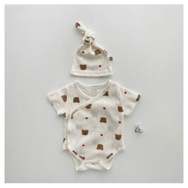 ロンパースセット ベビー服 新生児 男の子 女の子 ボンネット付き 66 73 80 90cm 赤ちゃん キッズ服 カバーオール 春 夏 半袖 綿 韓国子供服 お宮参り 退院着 可愛い 出産祝い プレゼント コットン 出産準備 送料無料