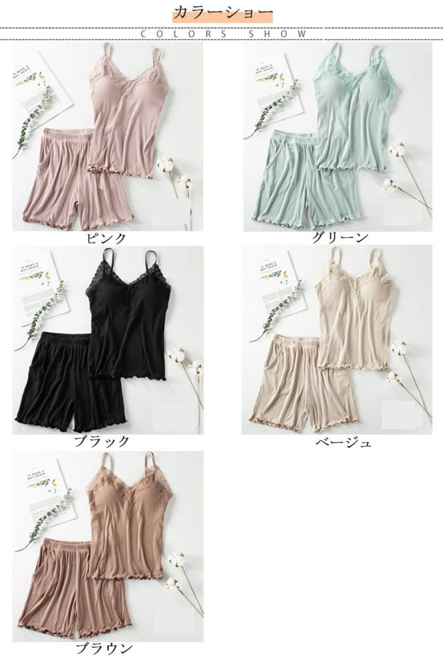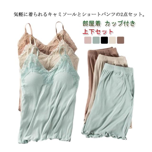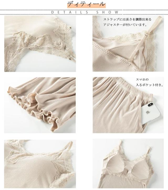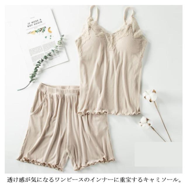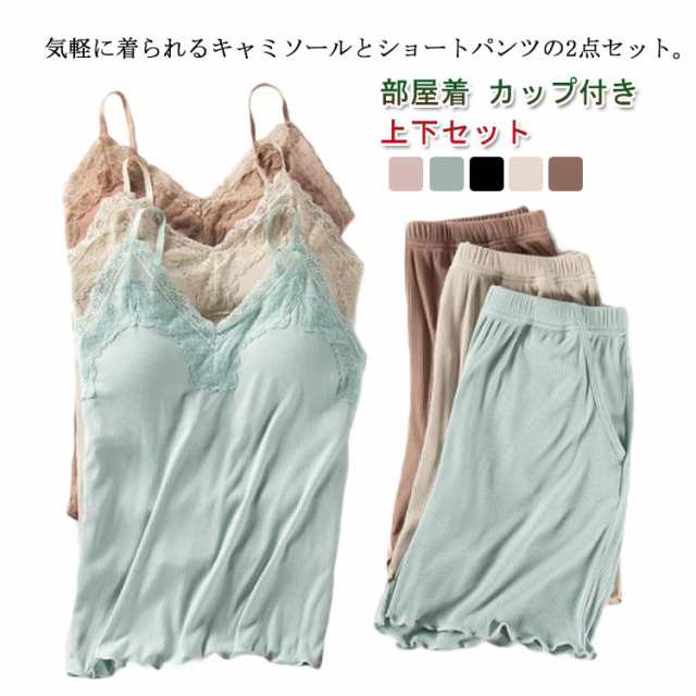 ペチコート カップ付き レディース キャミソール ショートパンツ 上下セット パジャマ 部屋着 ルームウェア セットアップ インナー 透け防止 透けない アンダーウェア 下着 肌着 短パン 無地 シンプル かわいい 大きいサイズ 春 夏 リラックス おうち 寝間着 送料無料
