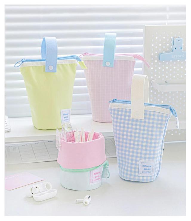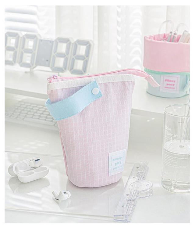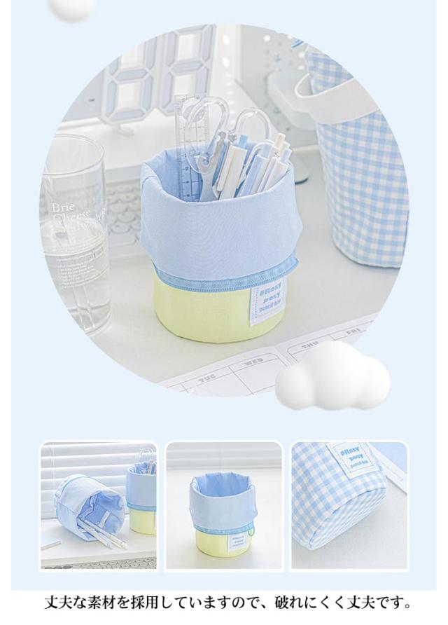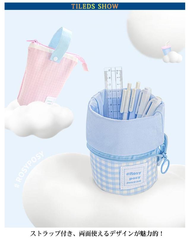 送料無料 縦型 ペンケース 筆箱 ペンポーチ 自立 スタンド 大容量 ペン立て かわいい おしゃれ 小学生 中学生 高校生 大学生 女の子 ストラップ付き 便利 チェック柄 文房具 軽量 小物入れ 筆記用具