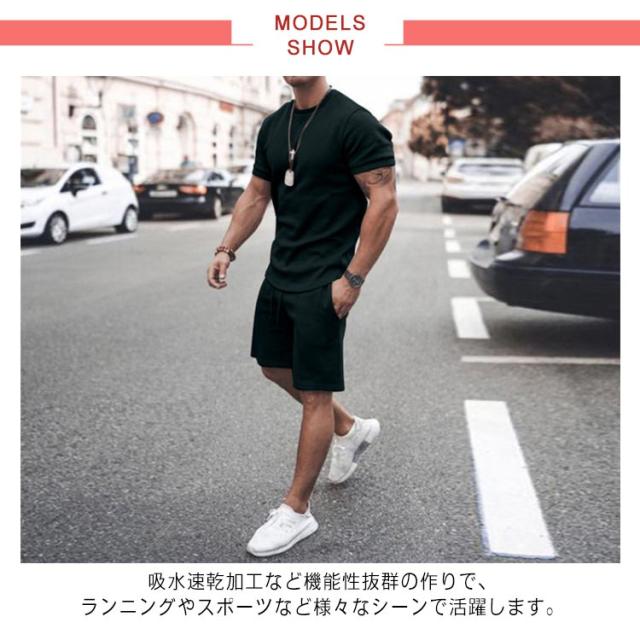 スウェット メンズ セットアップ 半袖Tシャツ ショートパンツ 2点セット ジャージ 上下セット 半袖 トップス 短パン 半ズボン 吸汗 速乾 通気性 伸縮性 大きいサイズ メンズファション カジュアル 夏服 スポーツウェア 運動 トレーニングウェア 部屋着 送料無料