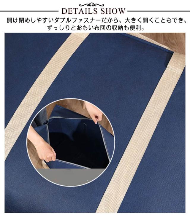 | 超大型の大容量バッグボストンバッグです 開け閉めしやすいダブルファスナーだから、大きく開くこともでき、ずっしりとおもい布団の収納も便利。 運びやすいし持ちやすい持ち手2本付きます。 大容量で収納可能、丈夫さで長くご愛用いただくことができます。 使わない時はコンパクトに折りたたんでおくことも可能。 撥水オックスフォード製で軽量で丈夫で、収納や整理整頓にとっても便利♪ 布団や衣類を入れて押入れに置いておくのも、外出時に使用するのにも適しています | |