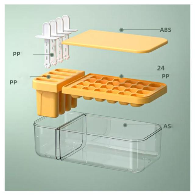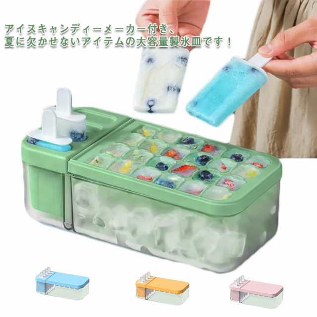夏に欠かせない、1個でアイスキャンディーメーカー×製氷皿!アイストレー フタ付 収納ボックス付き アイスキューブトレー 製氷トレー 手作りアイス アイスクリーム 省スペース 耐冷性 ホコリ防止 DIY 自由アレンジ