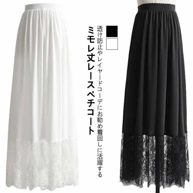 ペチコート ロング スカート 大人 ゆったり レディース レース ペチスカート 裾 インナー マキシ丈 きれいめ ガールズ インナー ホワイト 黒 重ね着 見せ 白 裾レース付き 体型カバー ペチコート おしゃれ ナチュラル 春夏 フリーサイズ 20代 30代 40代 50代 送料無料