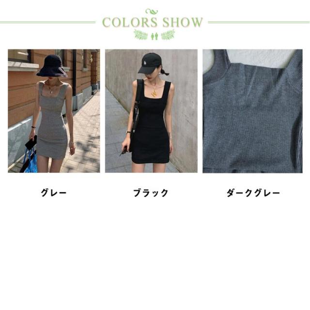 【送料無料】ミニワンピース タイト ノースリーブ スクエアネック ミニワンピ キャミワンピ タンクトップワンピ ストレンチ 韓国 大人可愛い ミニ丈 ニットワンピース タイト セクシー シンプル 白 黒 無地 春夏秋