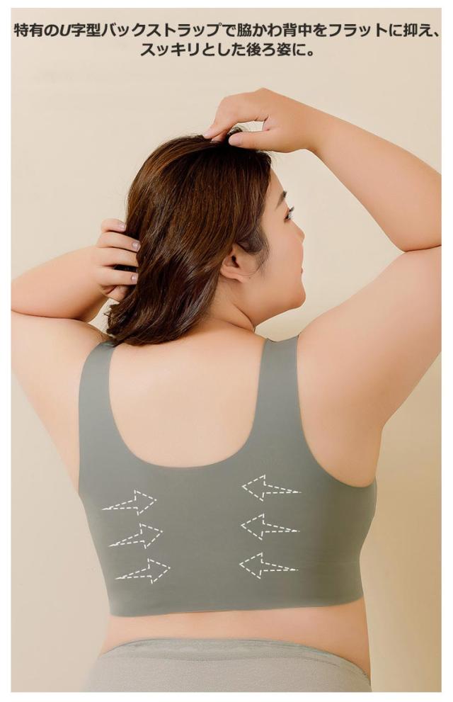 | 大きいサイズ L ? 6L キレイな形を保ったままにスッキリ見せる ブラ全体も蒸れにくい素材で作られているため、暑い季節でも快適な着け心地を実現しました。 特有のU字型バックストラップで脇かわ背中をフラットに抑え、スッキリとした後ろ姿に。 ノンワイヤーでもバストをしっかり覆ってしっかり支えます サイドも幅広にとっており、脇肉もすっきり!きれいなラインを作ります。 幅広ストラップ採用で長時間の着用も痛くなく安定感のあるつけ心地。 バストが目立つから盛りたくない、太って見えるから小さく見せたい、 そんな大きい胸がお悩みの方におすすめです。 | |