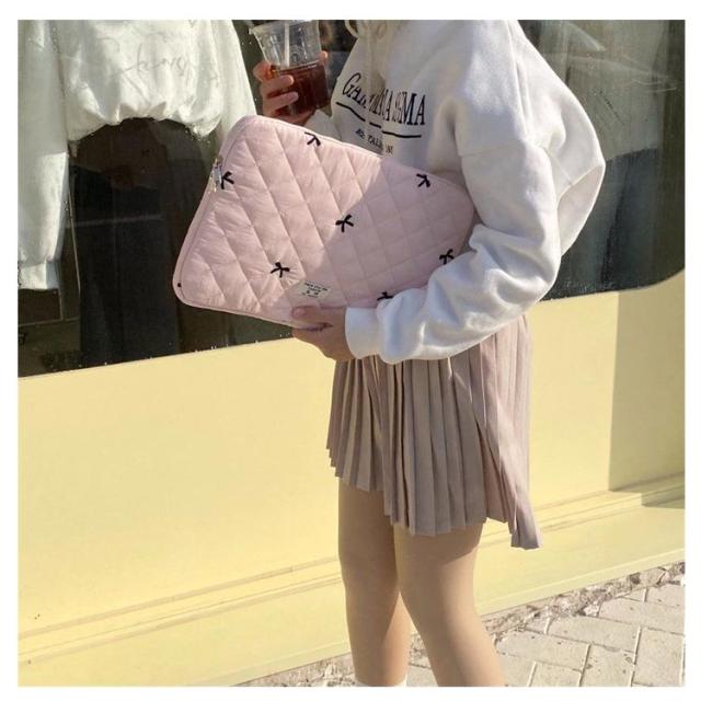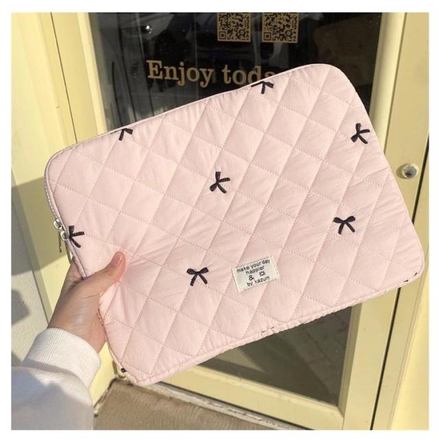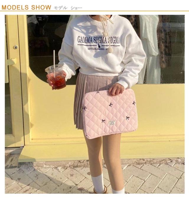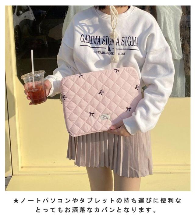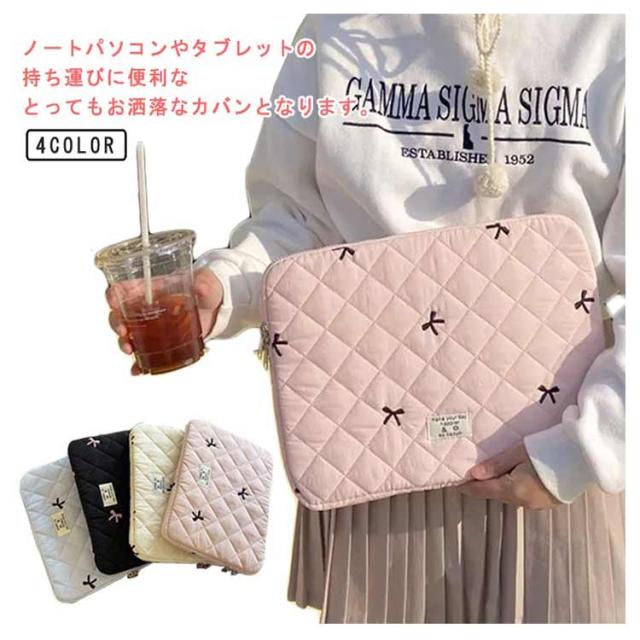 送料無料 パソコンケース 韓国 ノートパソコン リボン柄 ブリーフケース カバン メンズ レディース パソコンバッグ 厚手 PCバッグ PCケース 可愛い おしゃれ インナーバッグ ギフト プレゼント 収納 11/12/13/14/15インチ対応 Macノート用 軽量