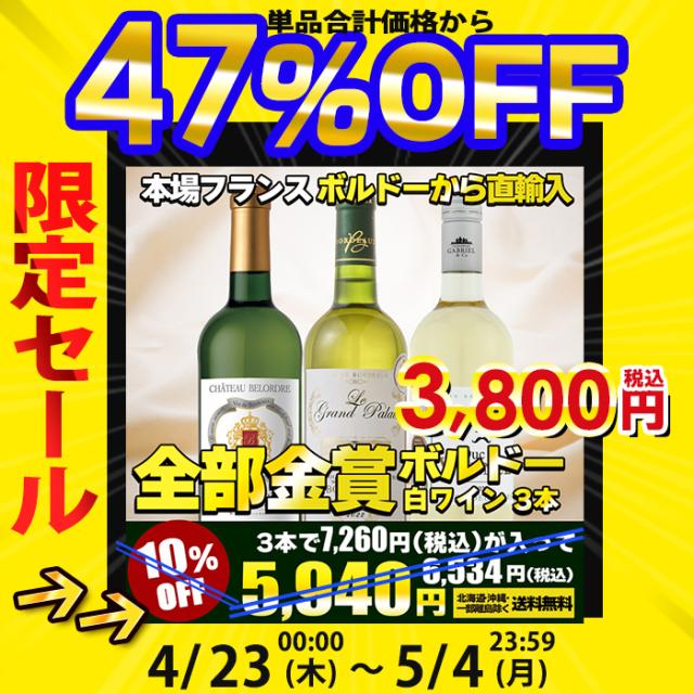 ワイン ワインセット 全て金賞受賞 ボルドー白ワイン 3本セット 送料無料 一部除外 フランスワイン ボルドーワイン 白ワイン 辛口 ワインセット 母の日 父の日 敬老の日 クリスマス バレンタイン ホワイトデー