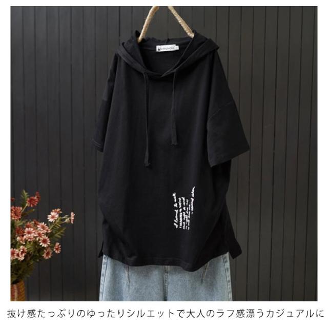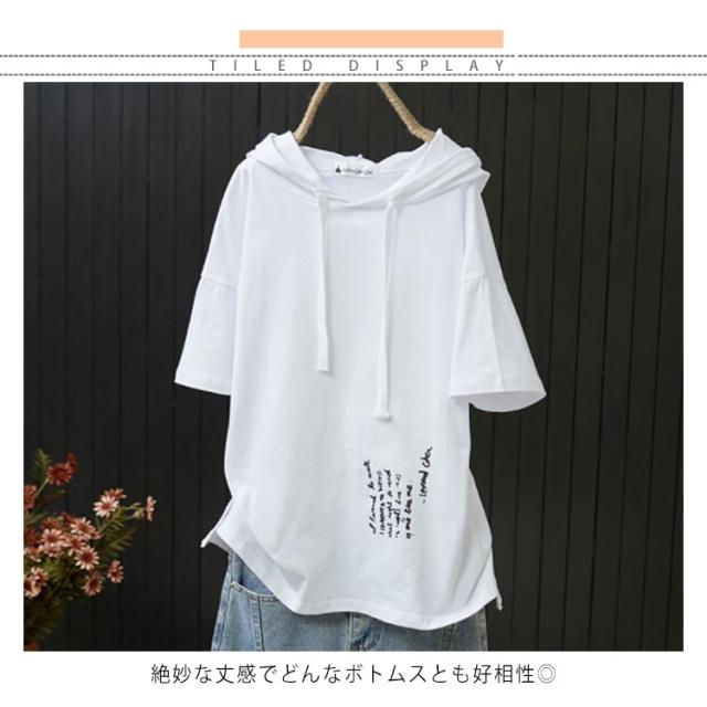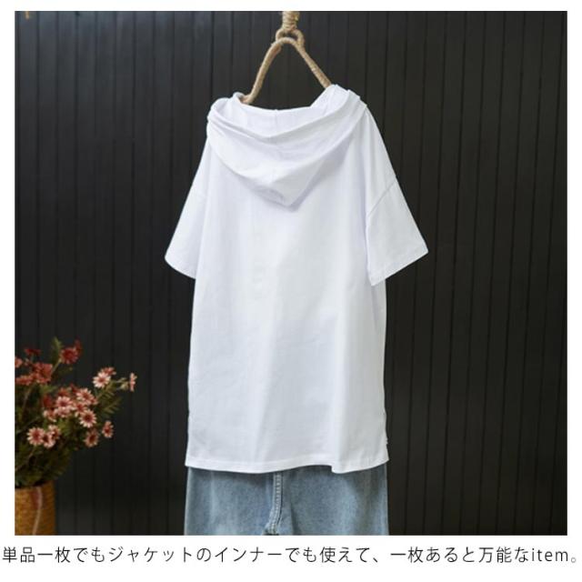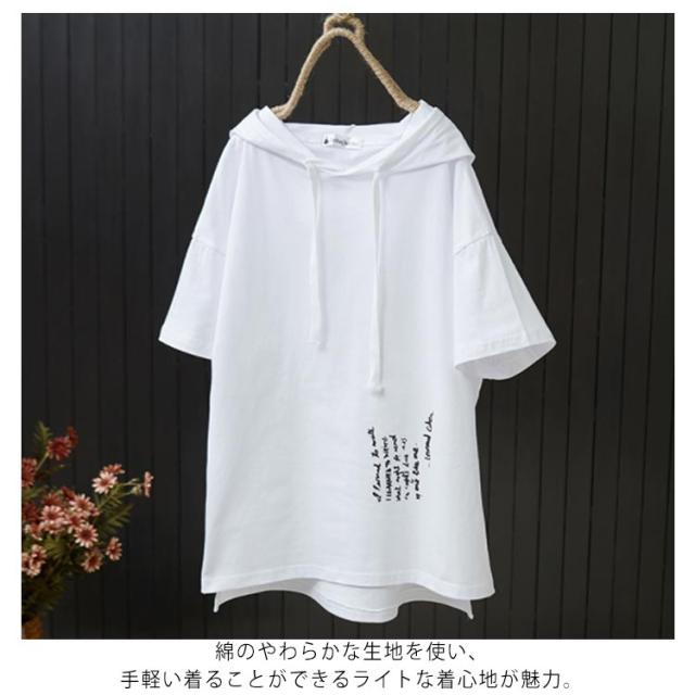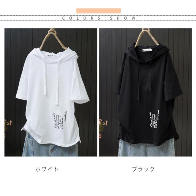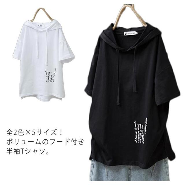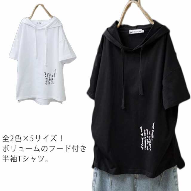 全2色×5サイズ!フード付き 半袖tシャツ フード付きtシャツ レディース フード付き パーカー tシャツ トップス プルオーバー カットソー 綿 ホワイト ブラック 春服 夏服 シンプル おしゃれ 送料無料