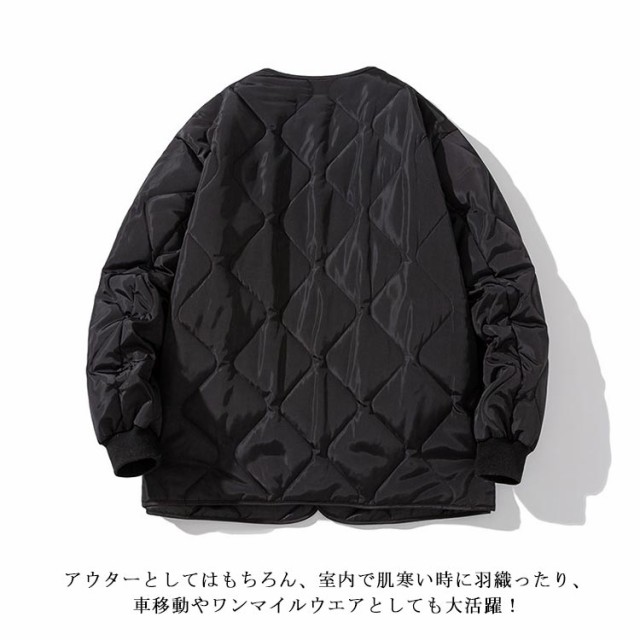 ライナージャケット インナーダウン ノーカラージャケット ユニセックス メンズ 中綿ジャケット 襟なし キルティング アウター ミリタリージャケット 防寒 中綿ジャケット 中綿 保温 アウター 上着 ライトアウター 防寒 保温 体型カバー ゆったり