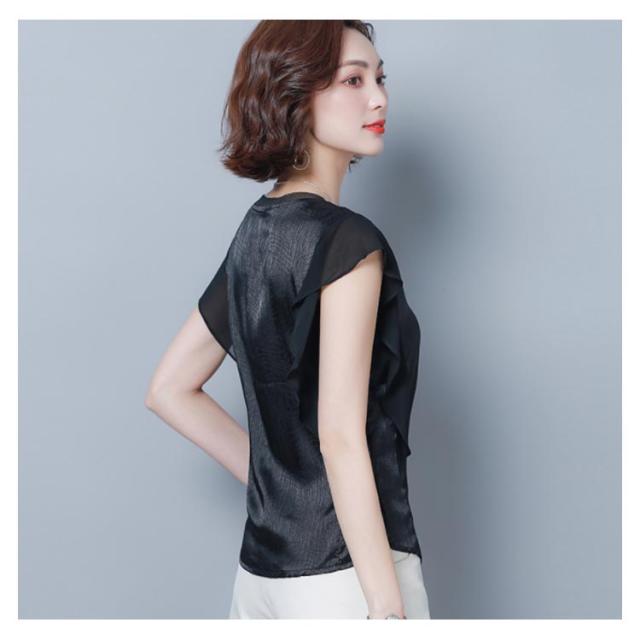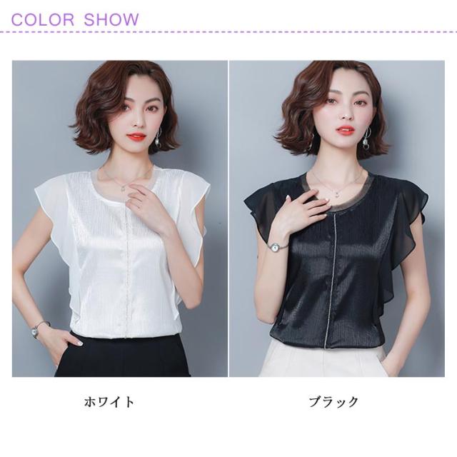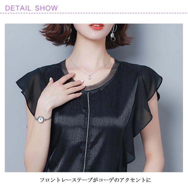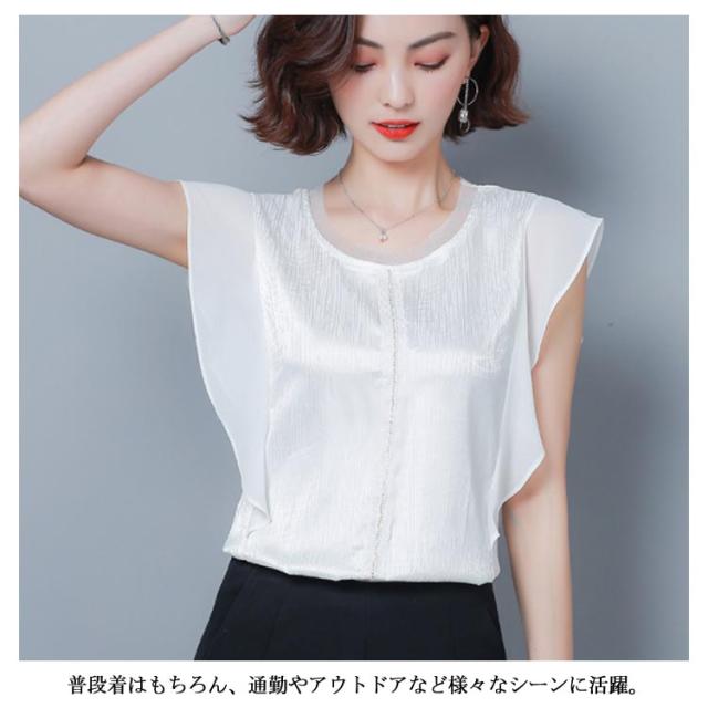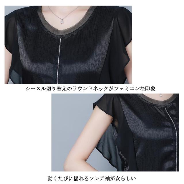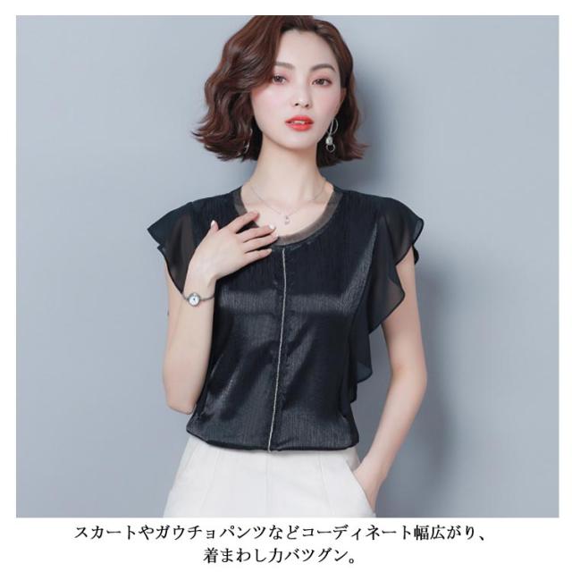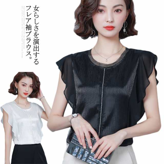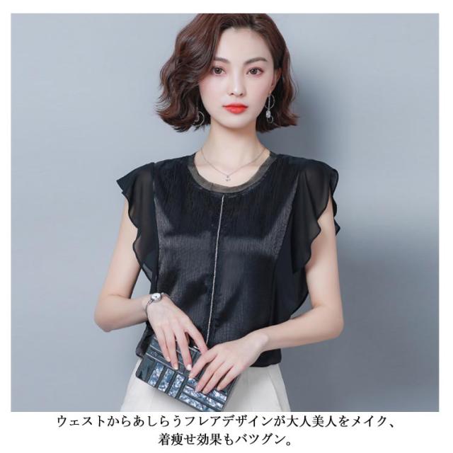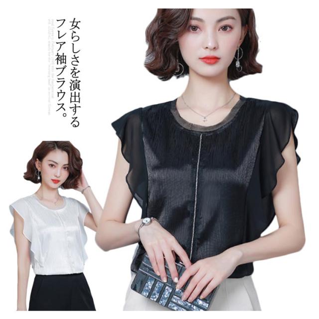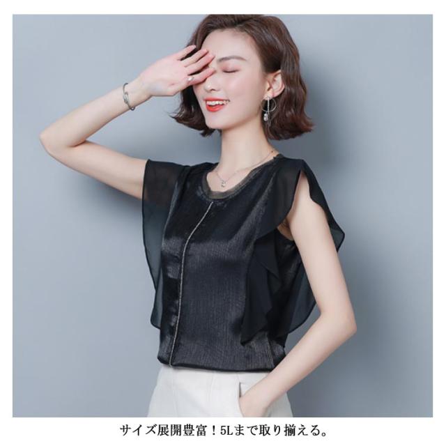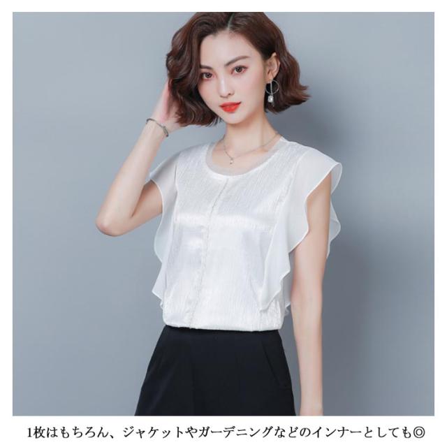 ブラウス トップス 無地 レディース フリル袖 フレア ゆとり 体型カバー オフィス お仕事 通勤 シンプル おしゃれ シャツ 半袖ブラウス タンクトップ 着痩せ シフォン 大きいサイズ送料無料