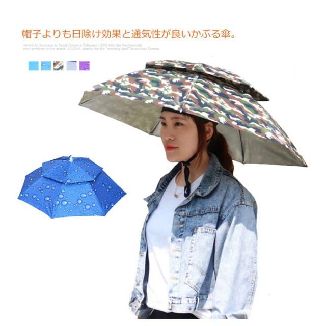 かさ かぶる傘 帽子タイプ 農作業 釣り 日差しカット 屋外イベント 日傘 日よけハット 熱中症対策 暑さ対策 アウトドア ハンズフリー 収納袋付き 折りたたみ コンパクト 便利グッズ