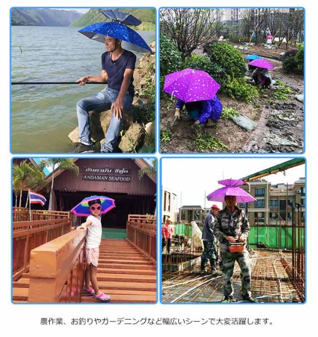 | 帽子よりも日除け効果と通気性が良いかぶる傘。 顎紐が傘の安定性を高めてくれるので、少々の風や急な雨でも活躍します。 軽くて、傘が大きいので背中も陽が当たらない。夏の強烈な太陽には役に立ってくれます。 農作業、お釣りやガーデニングなど幅広いシーンで大変活躍します。 コンパクトに収納出来るので持ち運びもラクラク。 | |