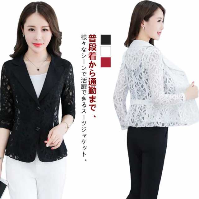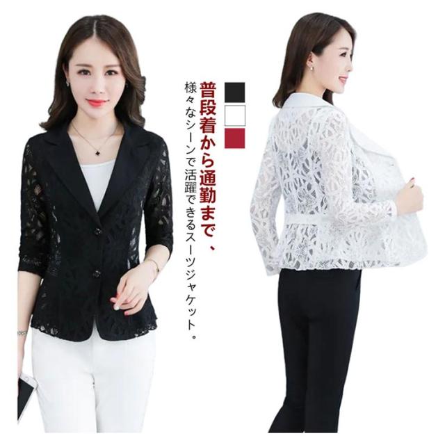 レース フォマールスーツ 春 ママスーツ サマージャケット 秋服 レディース テーラードジャケット ジャケット 大きいサイズ 春 アウター レーススーツ 上着 細身 テーラードジャケット オフィス 透け感 シースルー 通学 送料無料