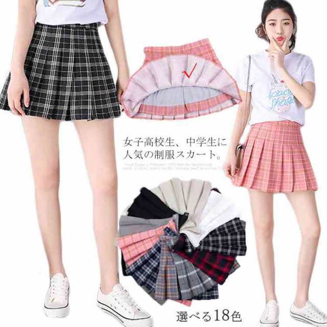 インナーパンツ付き スクールスカート 無地 チェック柄 プリーツスカート 制服スカート 女子中高生 ミニ スカート フレアスカート 学生服 高校生 学生 中学 プリーツ スクール スカート 女子高生 制服送料無料