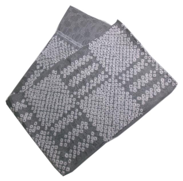 【訳有り 少難あり】 帯揚げ 帯上げ 絞り 正絹 グレー地菊花地模様地 市松柄付 着物 訪問着 色無地 小紋 フォーマル カジュアル 帯あげ しぼり シルク