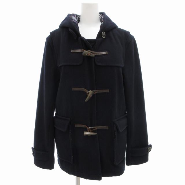 【中古】ミツネ MITSUMINE フーデットダッフルコート ショート トグルボタン 裏地チェック L 紺 ネイビー /GV