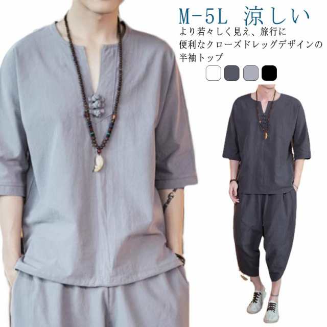甚平 メンズ パジャマ セットアップ 綿 麻 男性 半袖 7分丈 サルエルパンツ 綿麻上下セット 涼しい セットアップ メンズ ワイドパンツ 上下 ルームウェア 半袖 薄手 Tシャツ パンツ 部屋着 ルームウェア 寝巻き 入院 夏 涼しい プレゼント 父の日 ギフト