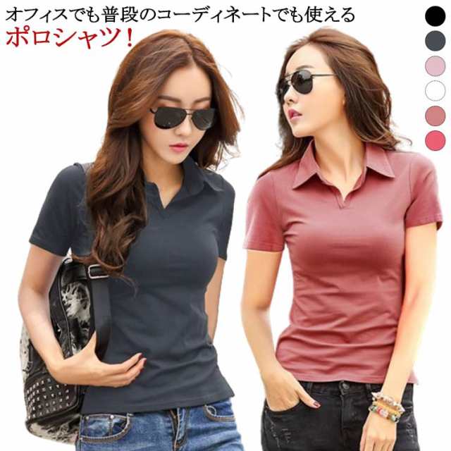 ポロシャツ レディース お洒落 半袖 夏服 襟付き オフィス 無地 ストレッチ トップス Yシャツ きれいめ スリム タイト ポロシャツ 女性 ビジネス 着痩せ 送料無料