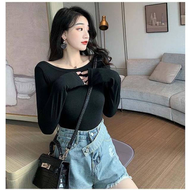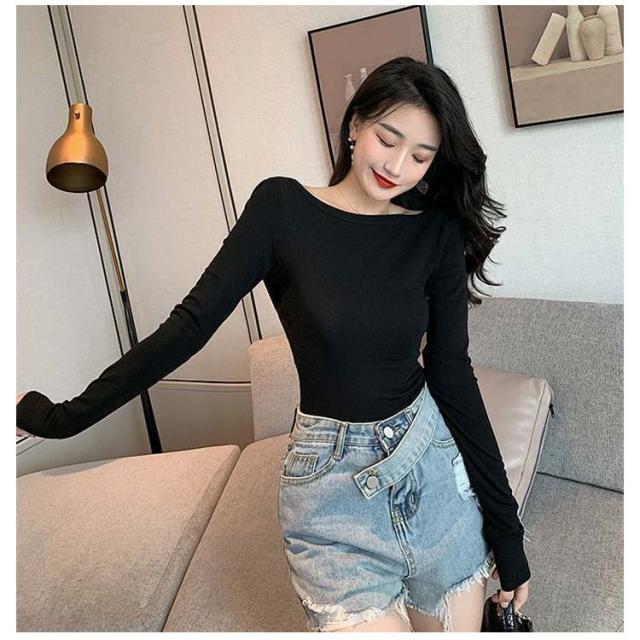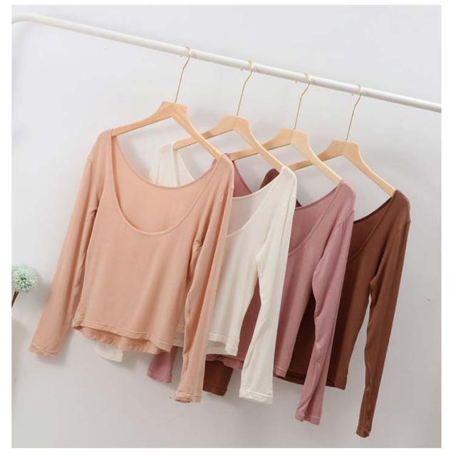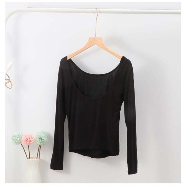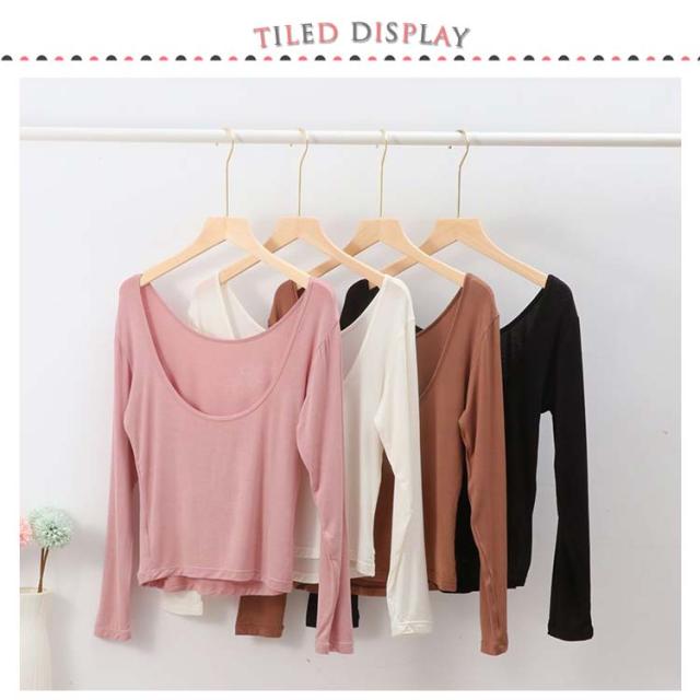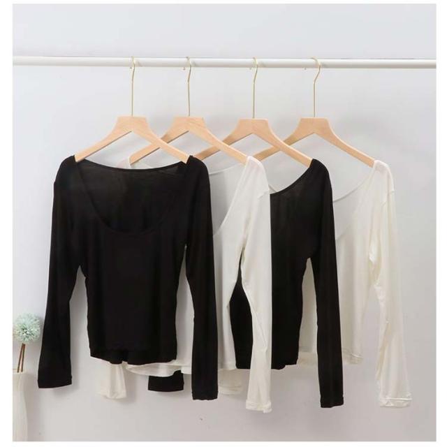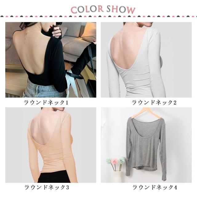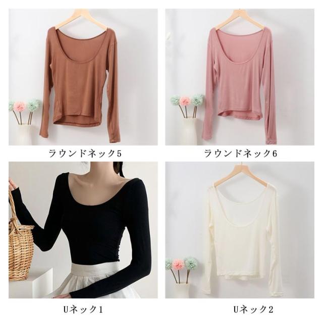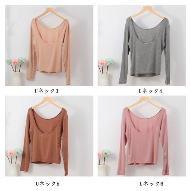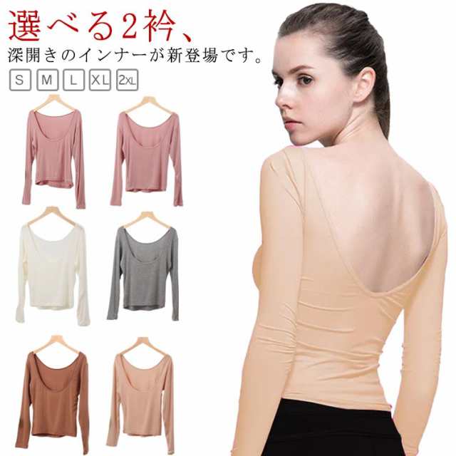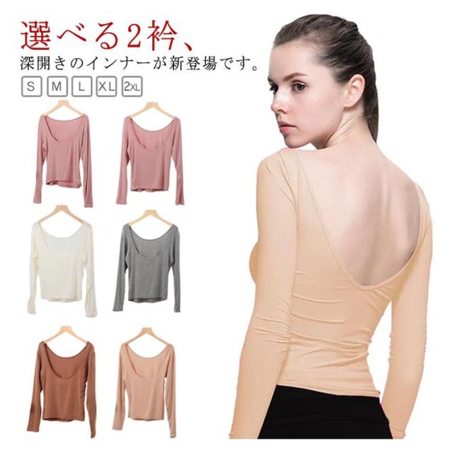 長袖 バレエネック 送料無料 インナー 深あき 肩開き 薄手 バックオープン 肌着 服から見えない 無地 レディース シンプル 肌着 ラウンドネック Uネック 送料無料 トップス アンダーウェア S M L XL