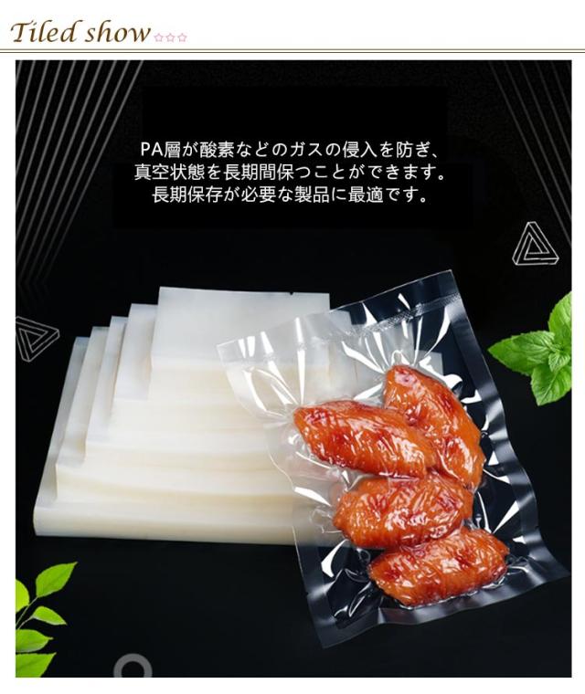 | 真空バッグ 100枚セット PA層が酸素などのガスの侵入を防ぎ、真空状態を長期間保つことができます。長期保存が必要な製品に最適です。 高温に耐える構造で、真空調理などの高温処理が必要な場面でも 安心して使用できます。 サイドにノッチ付き、真空パックした物をいざ開封するとき、ハサミいらずでとっても便利です。 | |