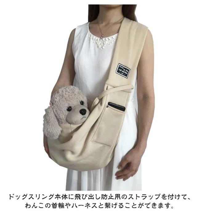 | 犬・猫用 スリングバッグ。 飛び出し防止ストラップがついた、飛び出し防止設計のペットスリング。 ドッグスリング本体に飛び出し防止用のストラップを付けて、わんこの首輪やハーネスと繋げることができます。 幅広のショルダーストラップで長時間使用しても疲れにくい。 スマホ・ゴミ袋・ペットフードなどを入れられるポケット付きで、散歩のときに便利です。 使わないときは小さく畳んで、お手持ちのバッグに収納することができます。 お散歩・お出かけ・旅行に、いつでもどこでも一緒に快適にお出かけできるペットバッグ!猫、ウサギ、小型犬、小動物に適しています。 | |