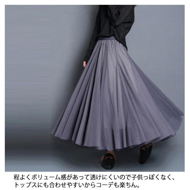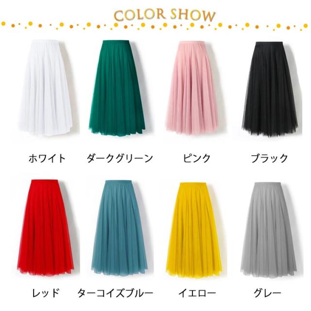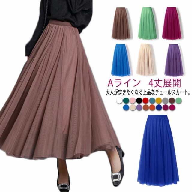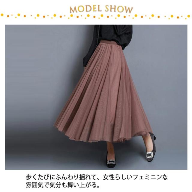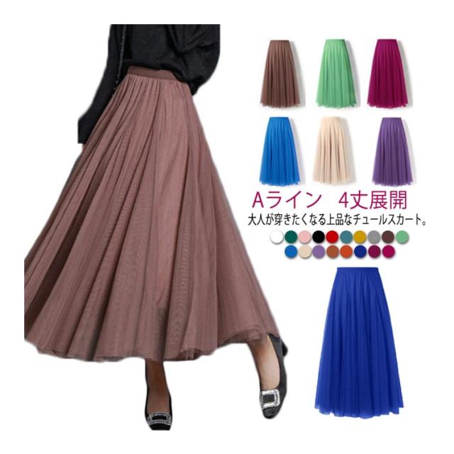 フレアスカート スカート スカート チュールスカート ウエストゴム ロング Aライン スカート 春 ミモレ丈 ふんわり プリーツスカート 4丈展開 無地 ボリューム 広がる裾 フレア/Aライン ロングスカート 20代 30代