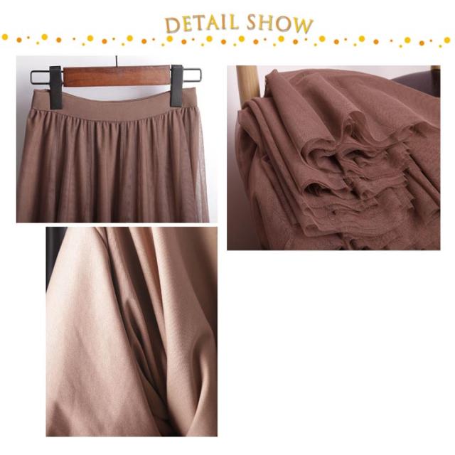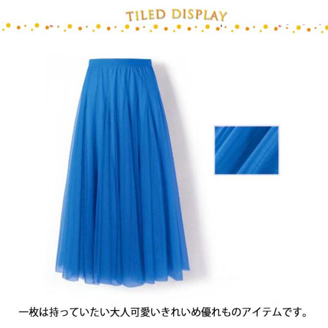 | 大人が穿きたくなる上品なチュールスカート。 歩くたびにふんわり揺れて、女性らしいフェミニンな雰囲気で気分も舞い上がる。 程よくボリューム感があって透けにくいので子供っぽくなく、トップスにも合わせやすいからコーデも楽ちん。 一枚は持っていたい大人可愛いきれいめ優れものアイテムです。 | |