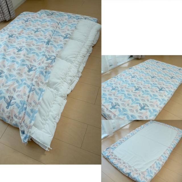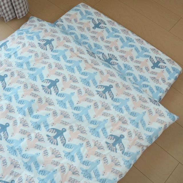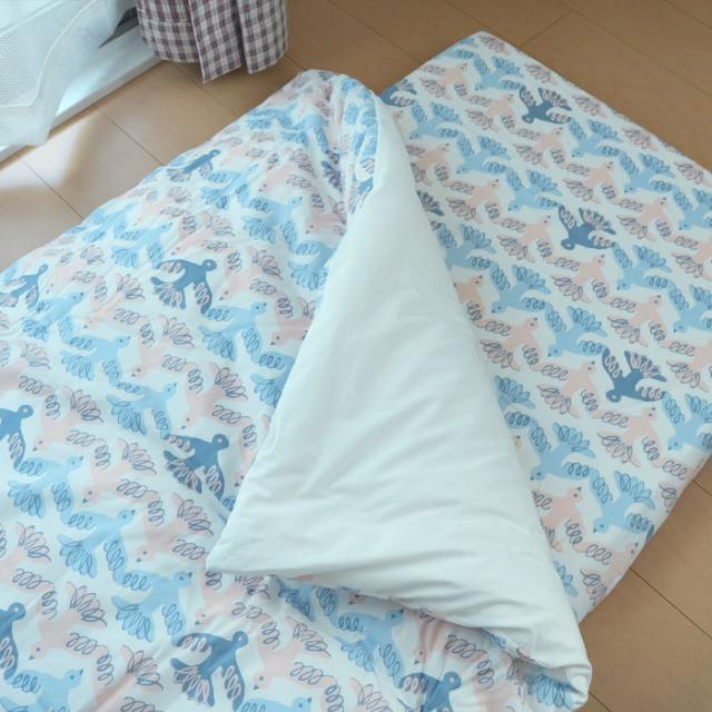 カバーはお洒落なとりさん柄 お布団はホワイト