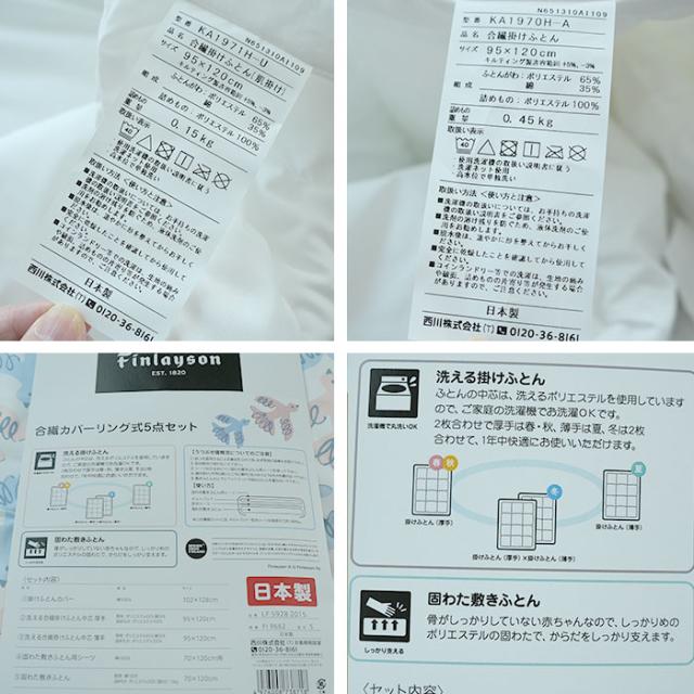 フィンレイソン 西川 ベビー組布団 5点セット 日本製 ムート柄 鳥柄 ベビー組布団 ベビーふとんセット カバーリング 16便 LF59282015