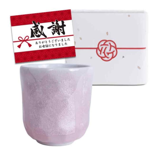 退職祝い プレゼント 湯呑み 九谷焼 銀彩 ピンク 人気ギフト 熨斗付き メッセージカード付 高級 箱入り ギフト包装済み
