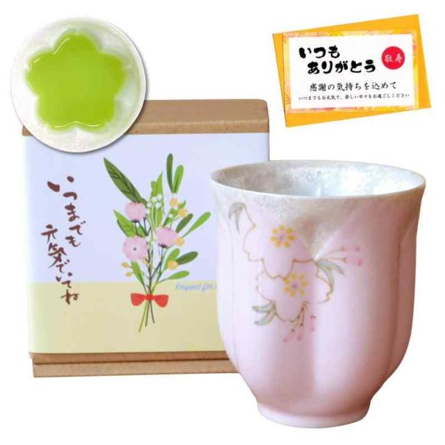 敬老の日 プレゼント おばあちゃん 感謝を込めたプレゼント 桜の花びら形になる 湯呑み 有田焼 華の舞 ピンク メッセージカード付き (敬老の日パッケージ(通常版))