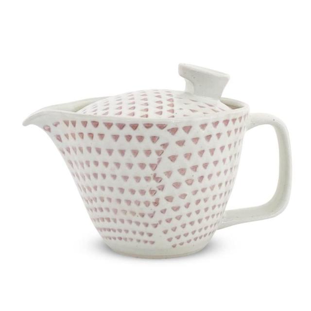 おしゃれな器で有名な波佐見焼のポット型の急須です。本体底面すれすれまで深さがあるステンレス製の茶こし付きなので少量でも美味しいお茶を楽しめます。又、片手でも注ぎやすいように蓋のつまみの位置を工夫しました。蓋の置き場に困らないように渕に掛けることが出来るように工夫してみました。