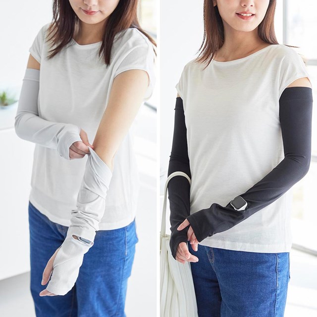 リバーシブルで使えるUVカット機能付きアームカバー。 |