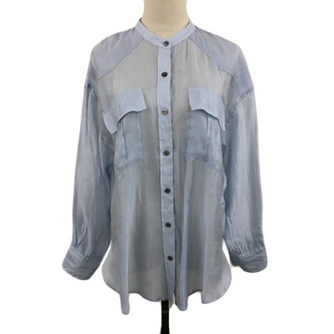 【中古】フレディ エミュ シャツ ブラウス バンドカラー シアー 無地 長袖 38 水色 ライトブルー レディース
