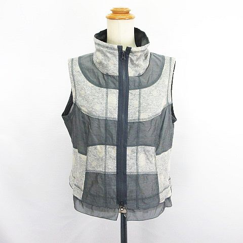 【中古】未使用品 イークラット E-clat ベスト ジップアップ ハイネック 切替 42 グレー系 ※EKM レディース