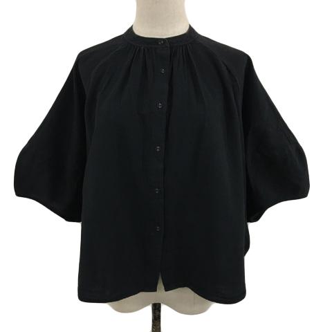 【中古】スタディオクリップ ブラウス シャツ バンドカラー リネン混 無地 五分袖 F 黒 ブラック レディース
