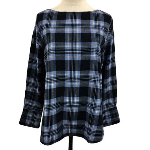 【中古】23区 オンワード樫山 CANCLINI ブラウス シャツ ネル ボートネック チェック バックボタン 長袖 M 青 黒